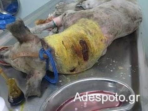 Το σκυλί βρέθηκε να έχει μια μεγάλη πληγή από μαχαίρι στην πλάτη του αλλά και τραύματα σε όλο του το σώμα!