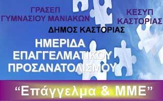 Η Διεύθυνση Δευτεροβάθμιας Εκπαίδευσης Καστοριάς και ο Δήμος Καστοριάς- Γραφείο Αντιδημάρχου Πολιτισμού, σας προσκαλούν...στην ημερίδα επαγγελματικού προσανατολισμού που διοργανώνουν σε συνεργασία με το ΚΕΣΥΠ Καστοριάς και το ΓΡΑΣΕΠ του Γυμνασίου Μανιάκων, με θέμα:
