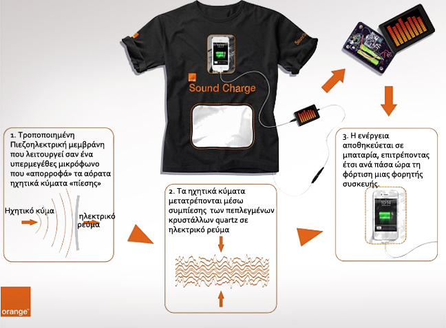 Πρωτοποριακά μπλουζάκια που θα μπορούν να φορτίσουν τα κινητά σας μέσω των ηχητικών κυμάτων...παρουσίασε ο πάροχος κινητής τηλεφωνίας Orange.