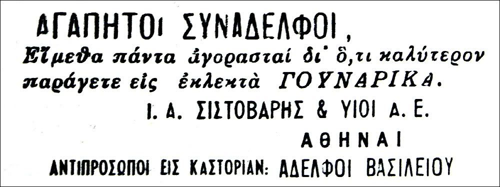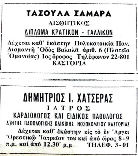 Κανα δυο διαφημιζόμενους τους γνωρίζω ως γιαγιάδες και παπούδες πλέον!! ωραίες αναμνήσεις. αν και 30 ετών ευχαριστώ για την ευκαιρία που μας δίνεται να ψηλαφίσουμε το καλλίγραμμο κορμί της καστοριανής ιστορίας.