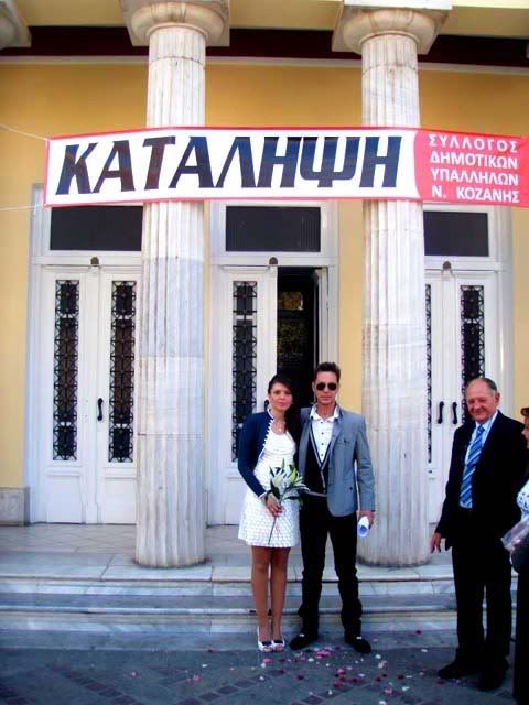Ζευγάρι νεόνυμφων με πολιτικό γάμο, ο Φίλιππος και η Λίτσα μόλις έχουν εξέλθει από το δημαρχείο και η πρώτη τους φωτογραφία έχει φόντο...
