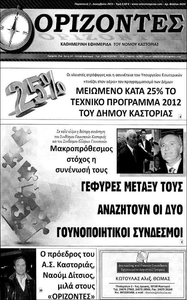 Ο Μπέτσκας σας παρουσιάζει όλα τα πρωτοσέλιδα των Καστοριανών Εφημερίδων.