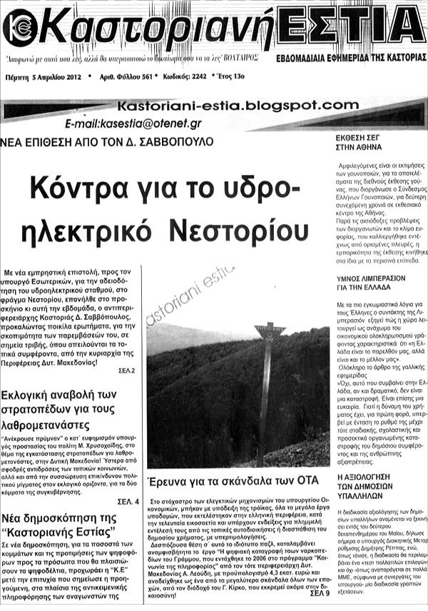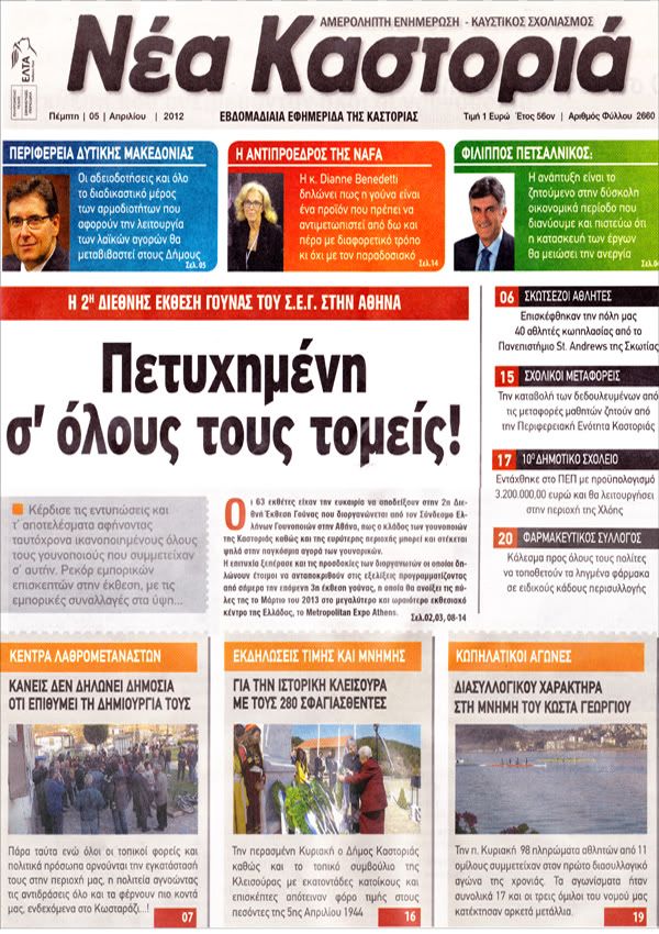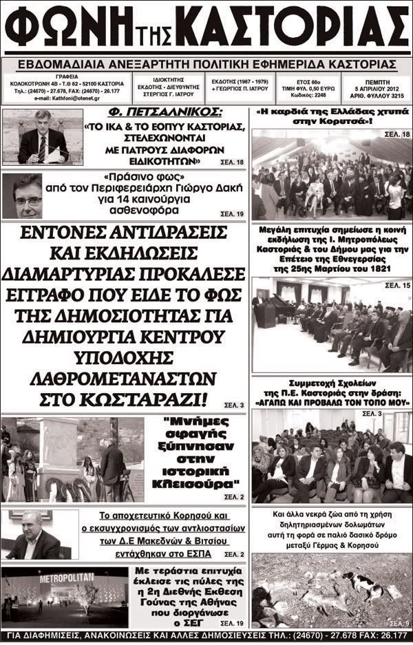 Κάθε Σάββατο ο Μπέτσκας σας παρουσιάζει όλα τα πρωτοσέλιδα των Καστοριανών Εφημερίδων...